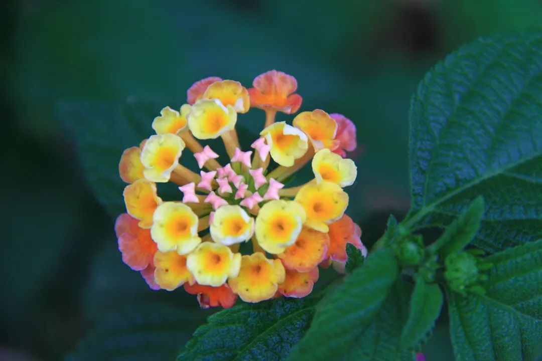 马缨丹,属于马鞭草科马缨丹属,一种直立或蔓性灌木,原本产自美洲热带。在我国,马缨丹广泛分布于广西、广东、福建等地,花序呈球状分布,花型小巧,颜色十分丰富,一簇花序上会有黄、橙、红、紫、粉红等多种颜色,因此,马缨丹也叫五色梅。