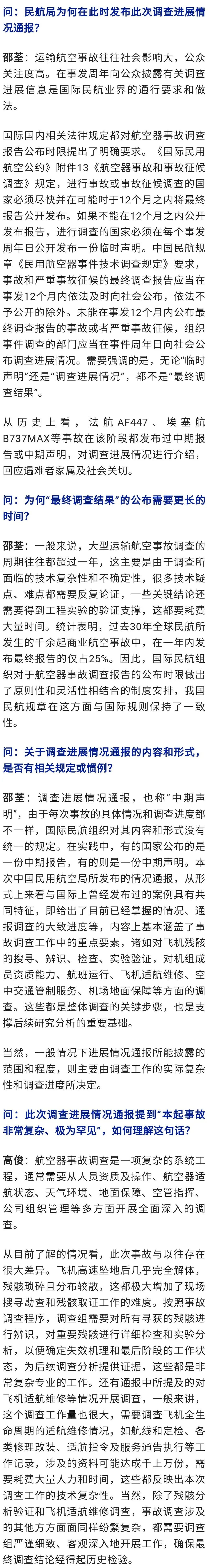 中国民用航空局3月20日发布《关于“3·21”东航MU5735航空器飞行事故调查进展情况的通报》。