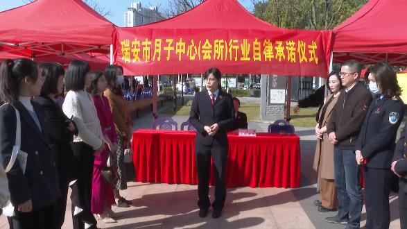 3月15日9时,瑞安市月子中心(会所)行业自律承诺仪式在明镜公园举行。此次活动由市人民检察院、妇联牵头,在人社、住建、卫建、市监、消防救援大队5家职能部门的见证下,我市7家月子中心(会所)签订了行业自律承诺书,规范行业经营行为,切实维护消费者的合法权益。