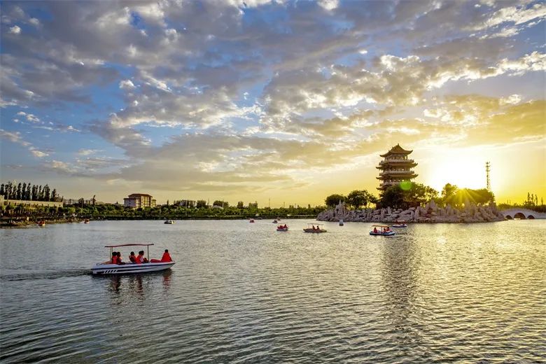 休闲游乐宜人景景区内采用自然景观和历史文化结合的方式,打造“十三将士归玉门”主题雕塑、疏林草地、花海、烟雨阁等景观,描绘了一幅绚丽多姿的“远古流金”画卷;除了人们所熟知和青睐的摩天轮、大摆锤、海盗船、碰碰车以外,还有掩映在绿荫丛中的湖心岛、美食广场、活力球场、亲子体能乐园等项目,别有一番吸引和意趣,游客在享受绿色美景的同时也可以参与景区内的特色游乐项目,尽享和谐舒适的人文自然环境。