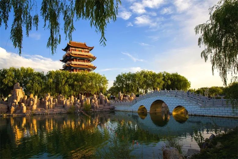 西部城市会客厅玉泽湖生态旅游景区位于古丝绸之路重镇,千年古县玉门。景区围绕“历史文化、人文文化、景观文化”三大文化体系设计了“水体、绿化、奇石”的自然景观带,形成了文化之路主轴景观带、玉湖、泽湖、新月湖、凤栖湖、广场演艺区、休闲亲水区、湖岛景观区、儿童游乐区、生态观光区等“一轴、四湖、五区”的景观功能区和生态旅游景区。景区内绿树间溪,青柳锁岸,波光潋滟,草木葱茏,天光湖色交相辉映,楼台亭阁交错成景。烟雨阁、沁馨泉、牌坊、九曲桥、青峰塔等旅游景点配套设施齐全,业态丰富、景观优美,是集边塞诗词文化展示、河西民宿风情体验、生态游乐、康体运动、滨水休闲、餐饮购物等功能为一体的旅游胜地。