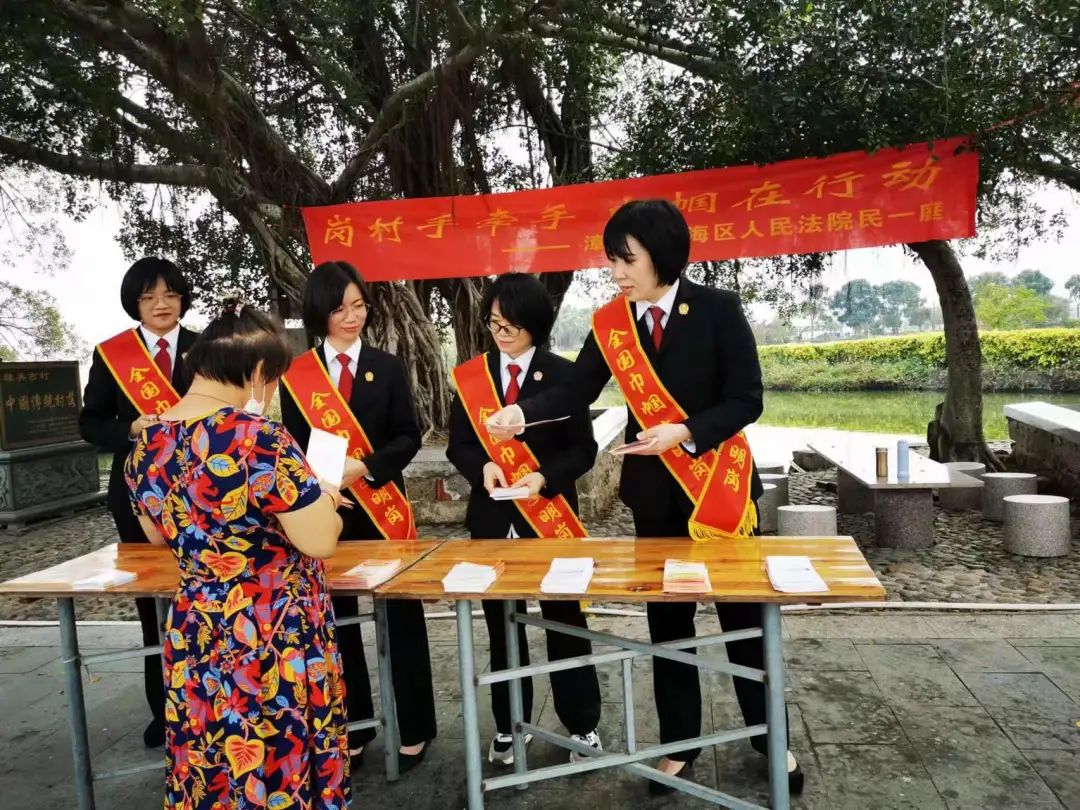3月21日上午,为积极响应“富民兴村巾帼行动”号召,全国巾帼文明岗—龙海法院民一庭组织巾帼干警志愿者一行来到岗村挂钩乡村—东园镇埭美村,携手埭美村妇女代表开展以“岗村手牵手·巾帼在行动”为主题普法宣传志愿服务活动。