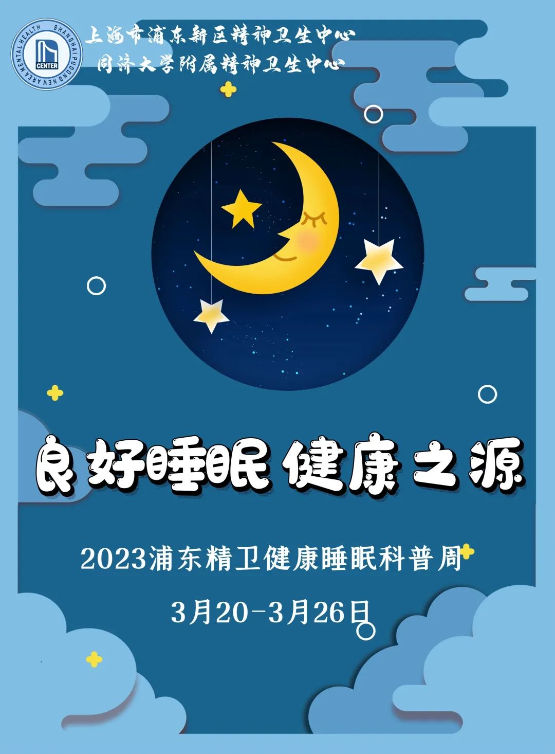 在2023世界睡眠日来及之际,我中心开展“良好睡眠 健康之源——浦东精卫健康睡眠科普周”活动,旨在坚持“以人民健康为中心”的理念,为受受失眠困扰的人们传递健康睡眠的相关科普知识,助理健康中国行动。