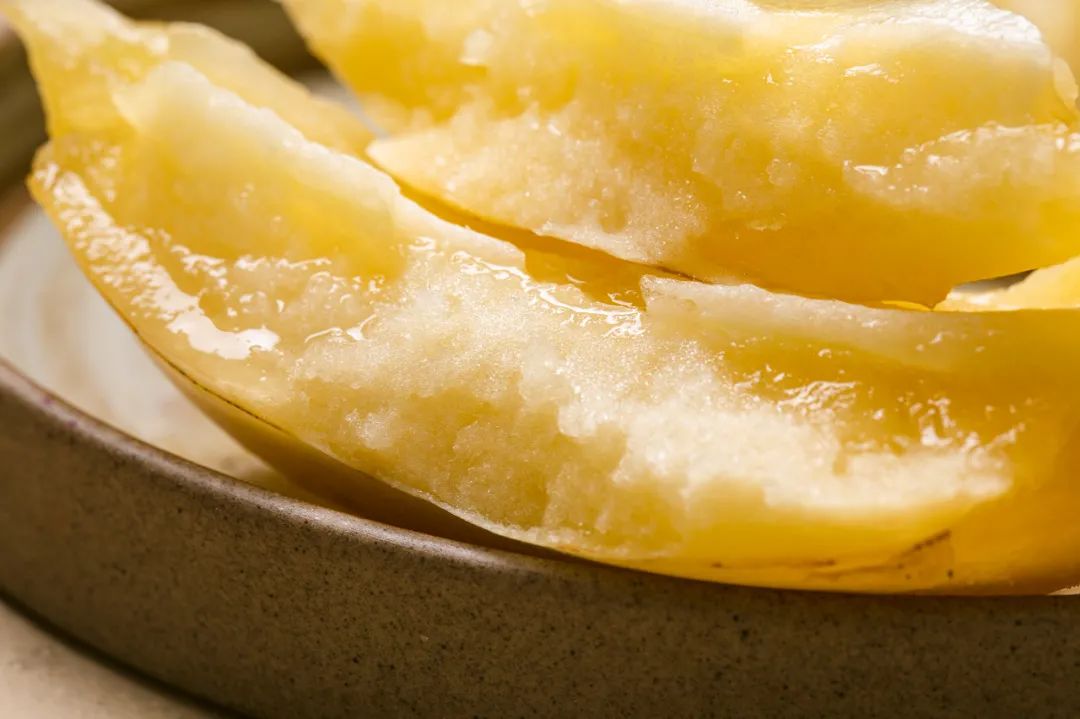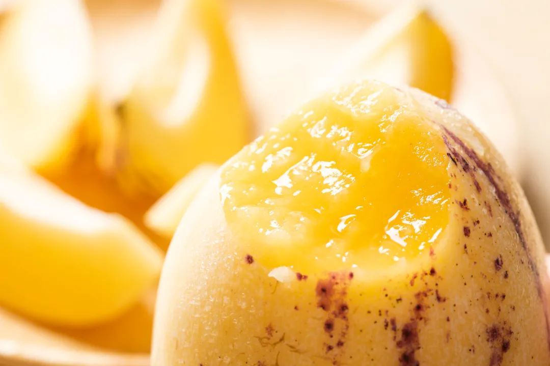 吃果肉:熟透的人参果果皮用手便可撕去,果内无核一口就能咬到头,细嫩多汁,啃起来的欢喜程度堪比水蜜桃。