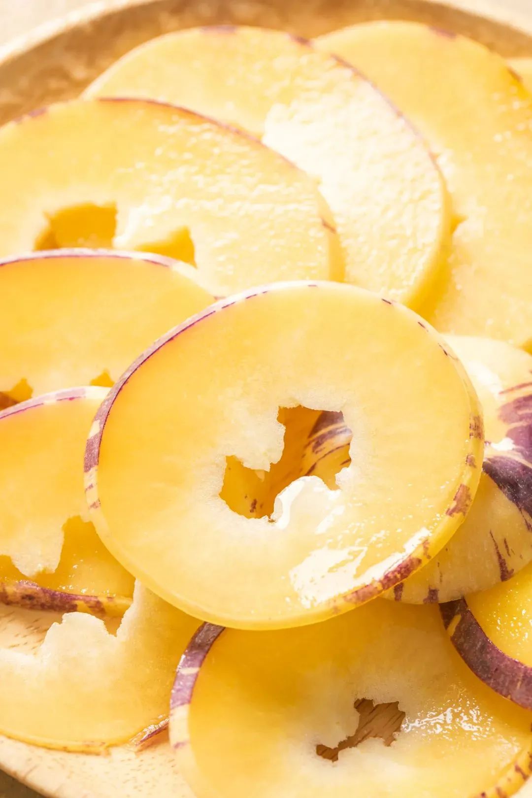 如果喜欢吃熟透的,就可以等待果皮颜色变深后再享用。切开之后果肉诱人,无核无渣,一口咬下去水分充足,清爽多汁。同时因为含糖量高,所以口感更为醇美,说是西北水蜜桃也不为过。