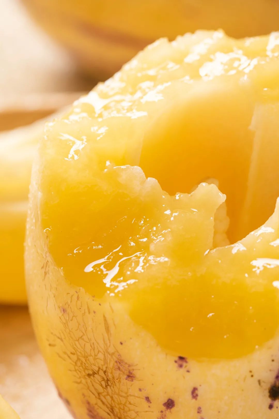 人参果淡雅清香,还有丝丝奶香味,软硬都可以吃,就像是吃冰激凌,硬有硬的脆生生,软有软的细沙沙。