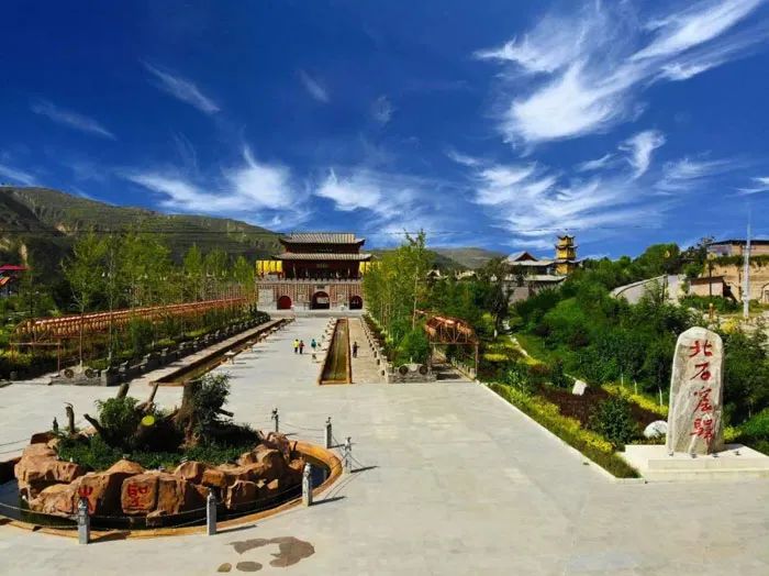 关陇丝路第一驿——北石窟驿景区是古关陇丝绸古道北线的重要交通节点,处于蒲河和茹河交汇之处,与甘肃“四大名窟”之一的北石窟寺隔河相望。