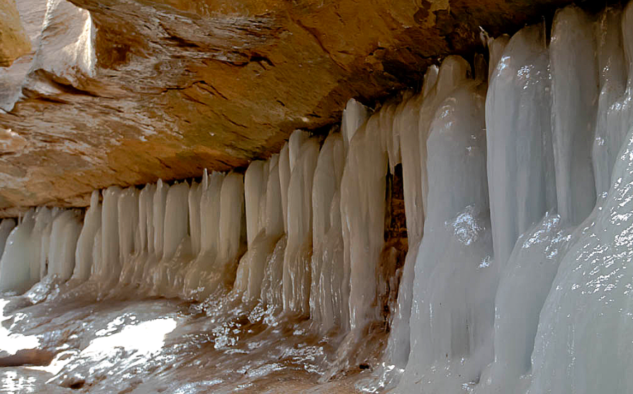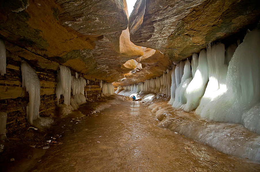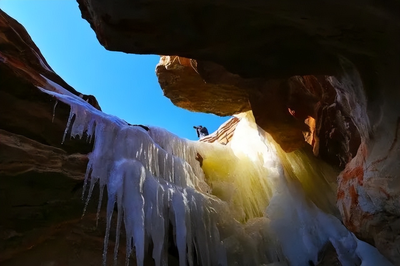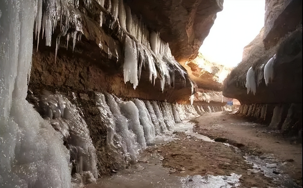 给人以鬼斧神工印象的一线天地穴下,整个景观浑然天成,如同一座地下冰宫、天然冰库、黄土冰窖,是庆阳盆地黄土高坡上一道罕见的地貌奇观。