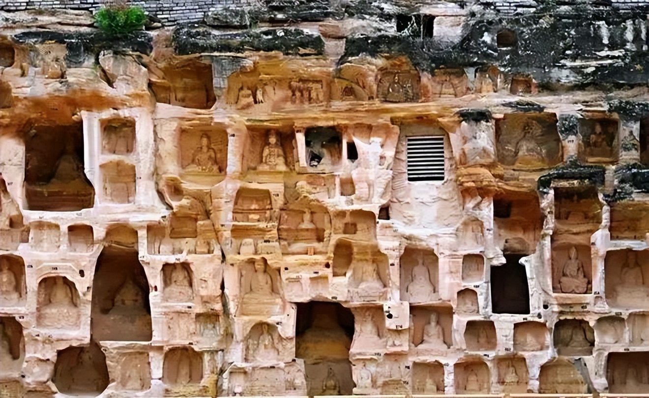 北石窟寺,位于庆阳市西峰区蒲河茹河的交汇处,数代人在以覆钟山为核心区的黄沙岩壁上开凿了300多个龛窟,造像2400多尊。