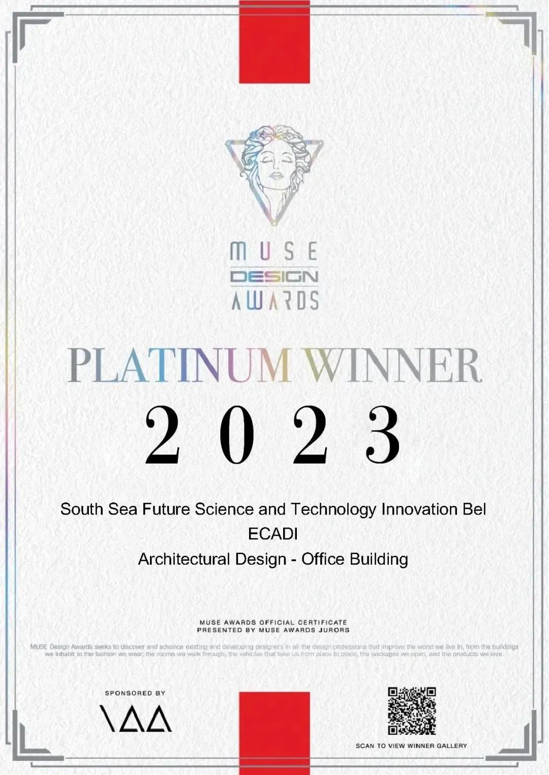 近日,区规建服务中心南海未来城科创带启动区项目获得MUSE Design Awards缪斯设计大奖建筑类最高奖铂金奖。缪斯设计奖(MUSE DESIGN AWARD)由美国博物馆联盟(AMM)与美国国际设计奖项协会(IAA)发起,设有艺术奖、设计奖等多项奖项,以评选各个行业领域卓越杰出的创作作品,该奖项每年评选一次,是全球创意领域最具影响力的国际奖项之一。此次获奖,见证了南海未来城科创带启动区项目设计水准已迈入国际领先水平,彰显出我区以“世界眼光、国际标准、盐城特色、高点定位”建设南海未来城的坚定决心。