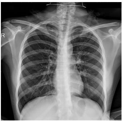 图2 胸部X线正常的EBTB病例有趣的是,EBTB患者常伴有慢性咳嗽、气促等症状,与哮喘临床表现颇为相似。PTB很少合并哮喘发病,因结核感染可诱导Th1免疫反应,且抑制了以Th2反应为特征的哮喘相关炎症过程[10]。因此,对于以慢性咳嗽、气促为主诉的患者,辨别结核病和哮喘的诊断至关重要。若慢性咳嗽、气促者按照CVA治疗后效果不佳,需怀疑EBTB可能。已知胸部X线对分辨EBTB与哮喘的应用价值不高,可执行支气管舒张(或激发试验)、气管镜检查(含镜下刷检、送检肺泡灌洗液培养等)用于两者的鉴别。