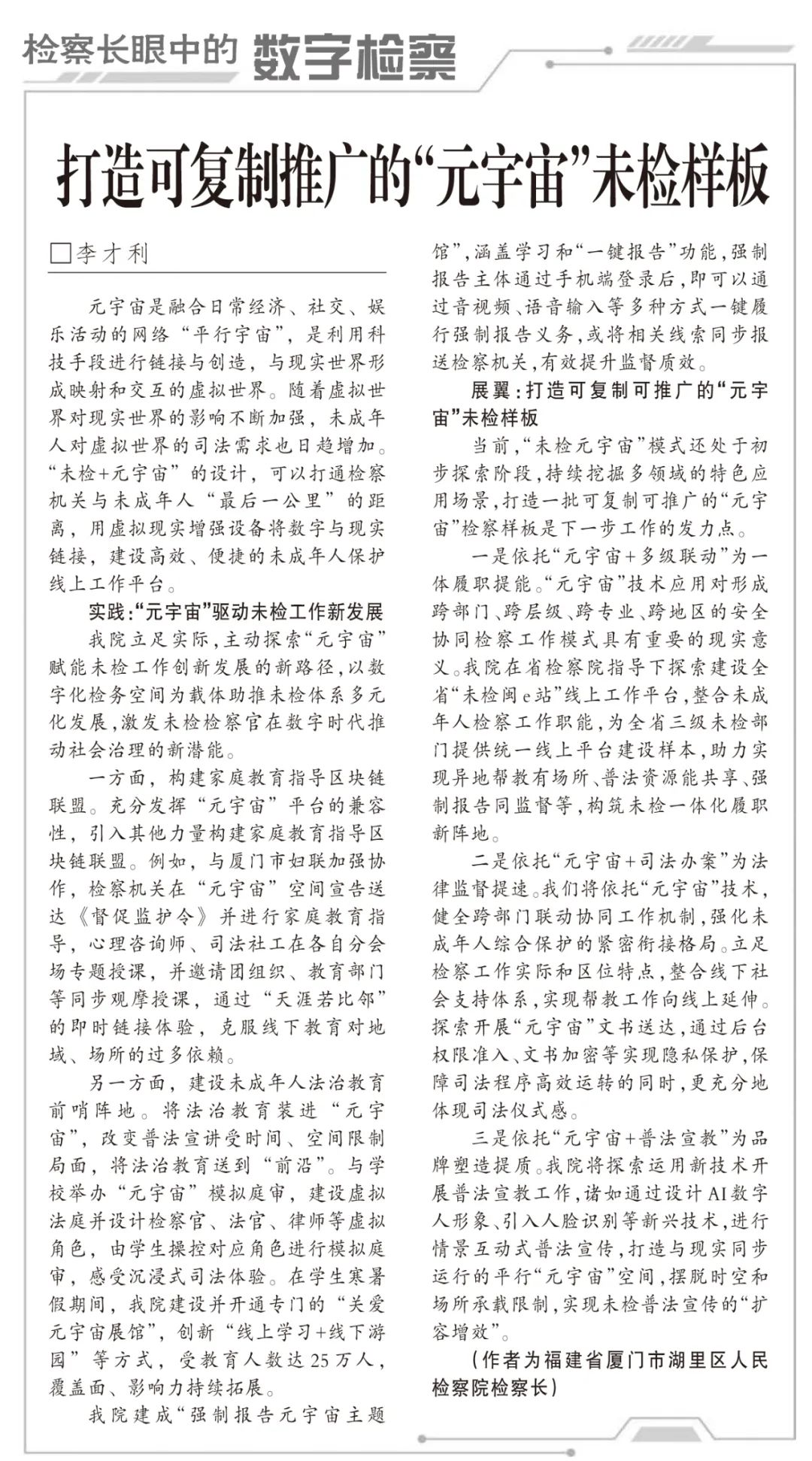 作者:厦门市湖里区检察院检察长 李才利