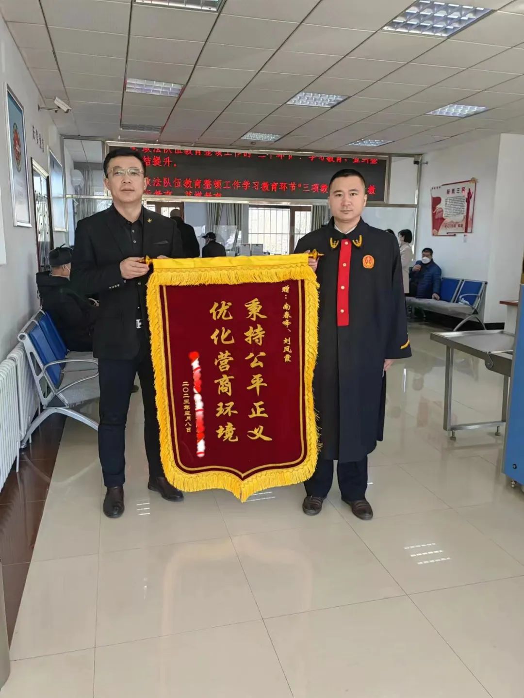 结案后,双方当事人对裁判结果均无异议,胜败皆服,某公司还特意将一面写有“秉持公平正义 优化营商环境”字样的锦旗送到法庭,以表示对南春峰法官工作的认可与感谢。