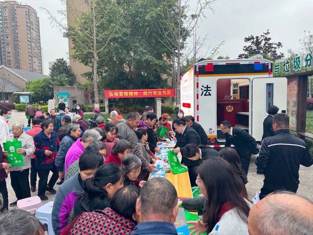 3月23日,为扎实推进机关党员“小江在身边”行动,江北法院两江鱼复人民法庭联合刑庭、鱼嘴镇和韵社区走进和韵家园小区共同开展“弘扬雷锋精神 践行司法为民”法治宣传活动。本次活动是继普法进学校、普法进商圈、普法进社区后的普法第四站。