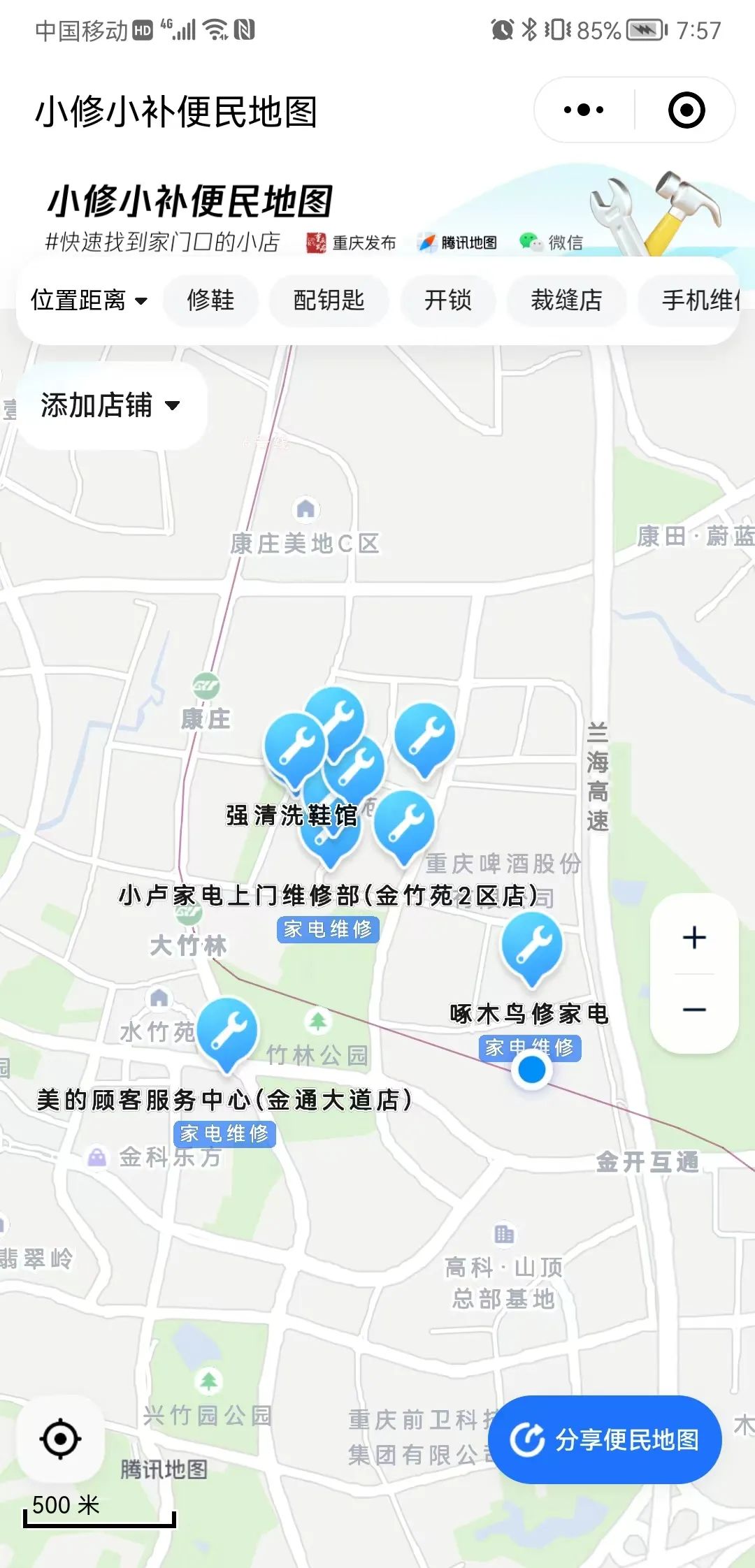 小修小补地图——修鞋、开锁、配钥匙、找裁缝……就上重庆发布!