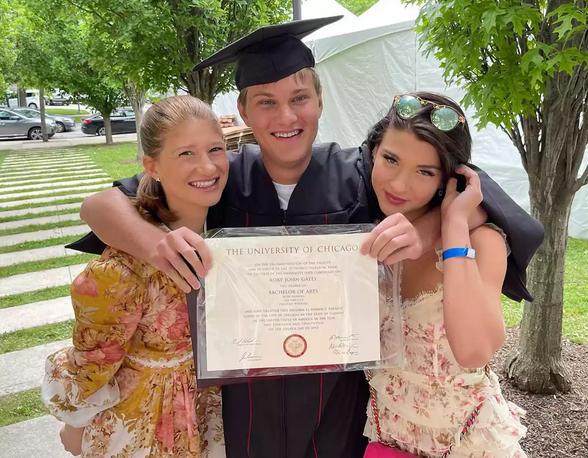 罗里已于去年毕业,在短短4年内拿到双学位和硕士学位,算是个不折不扣的学霸啊!毕业那天,姐姐和妹妹都赶去为他祝贺。