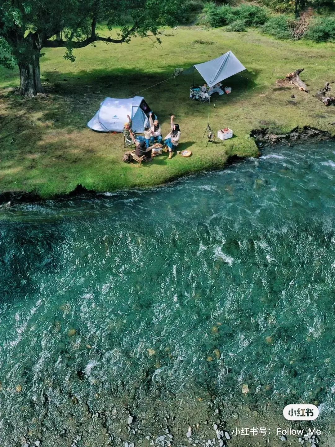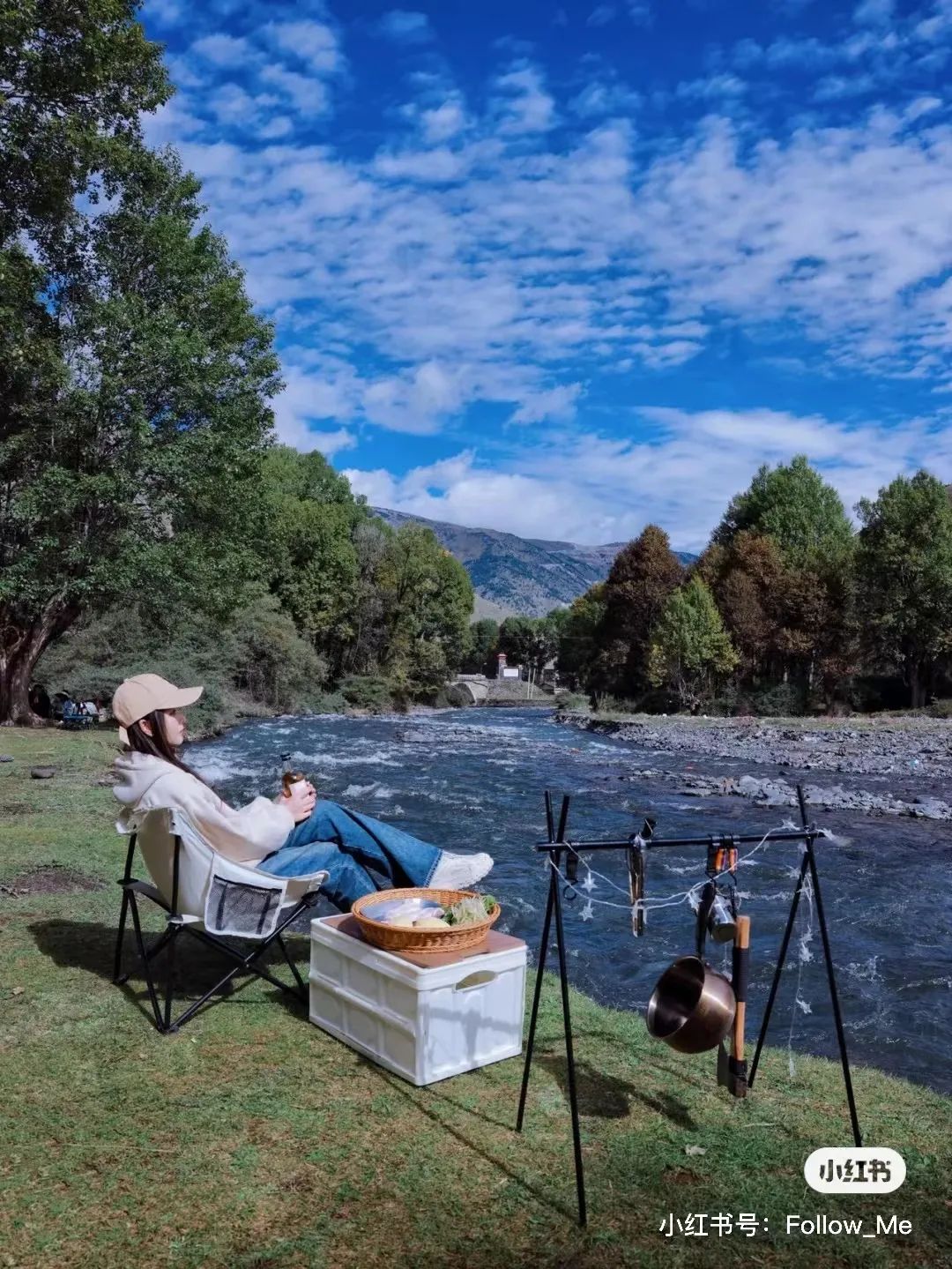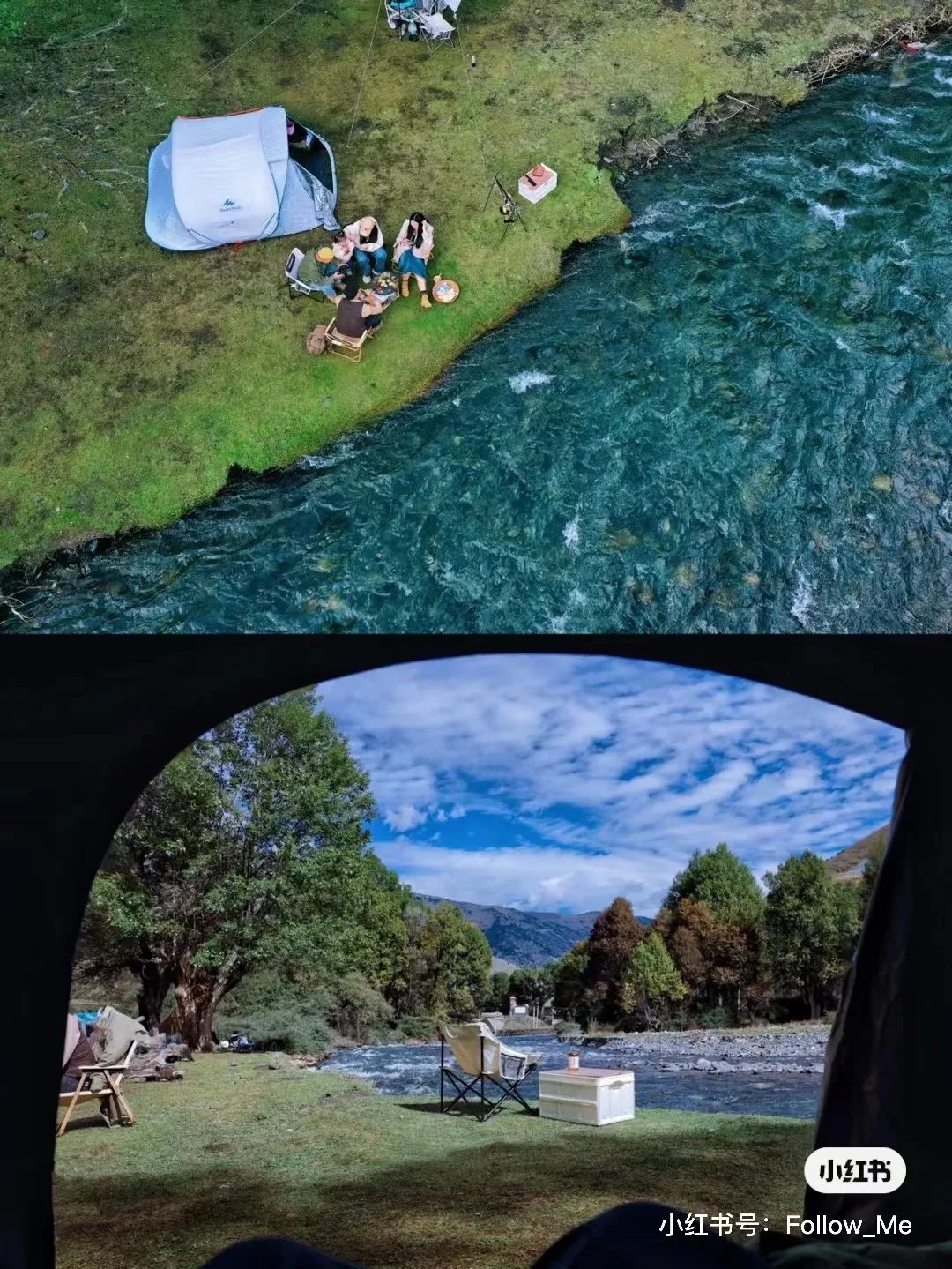 图片来源 | Follow蜜甲根坝很好找,就在河边上,距离新都桥只有三十分钟的路程。一片空地,一处草坪,靠着树林在雪山下看涓涓流淌的河水,满足了我们对露营的所有幻想。