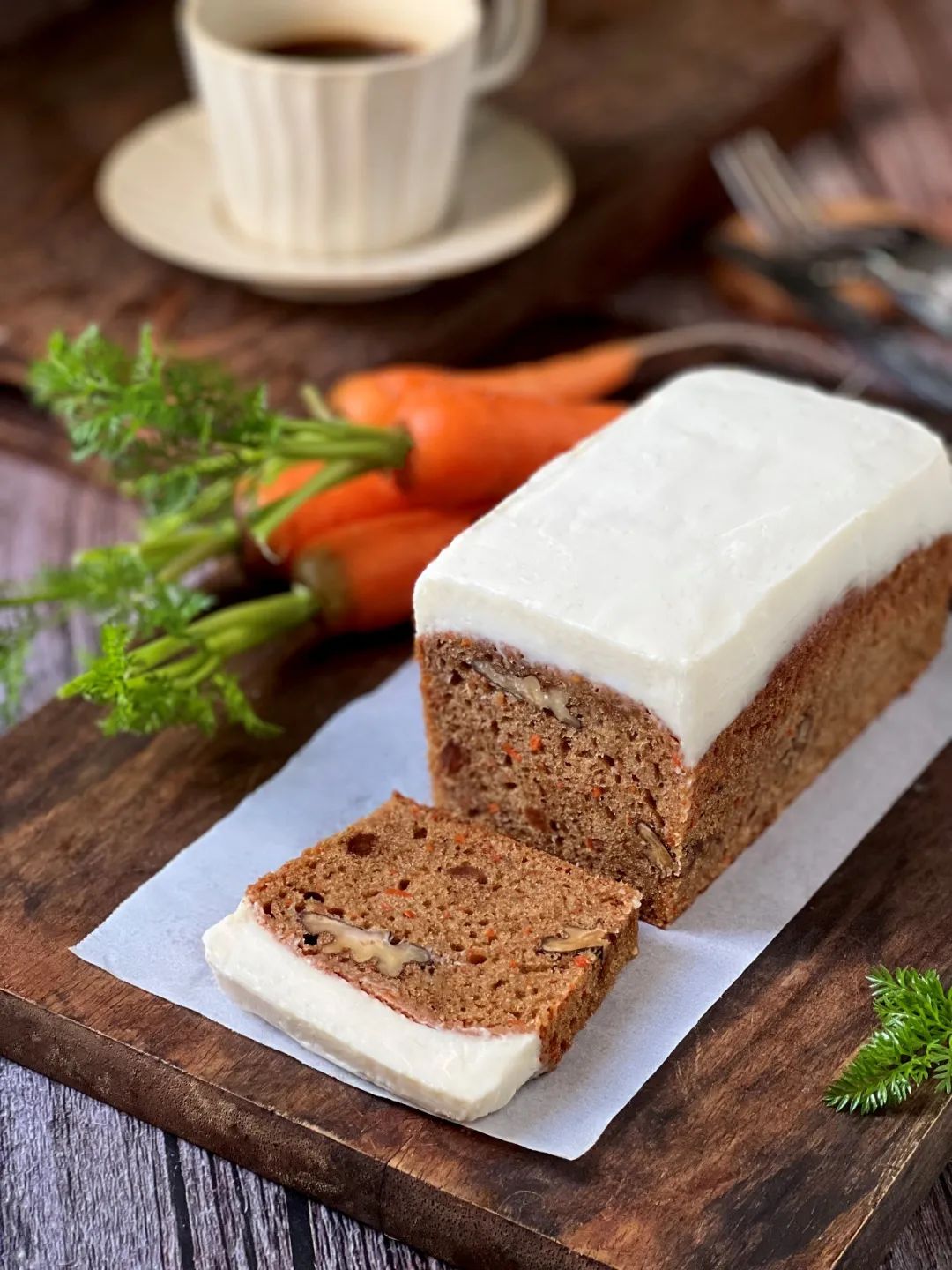 材料:蛋糕体:植物油80克,鸡蛋2个,低筋面粉100克,红糖90克,泡打粉2克,小苏打、姜粉、盐各1克,肉桂粉3克,切碎的胡萝卜90克,葡萄干25克,熟核桃20克。