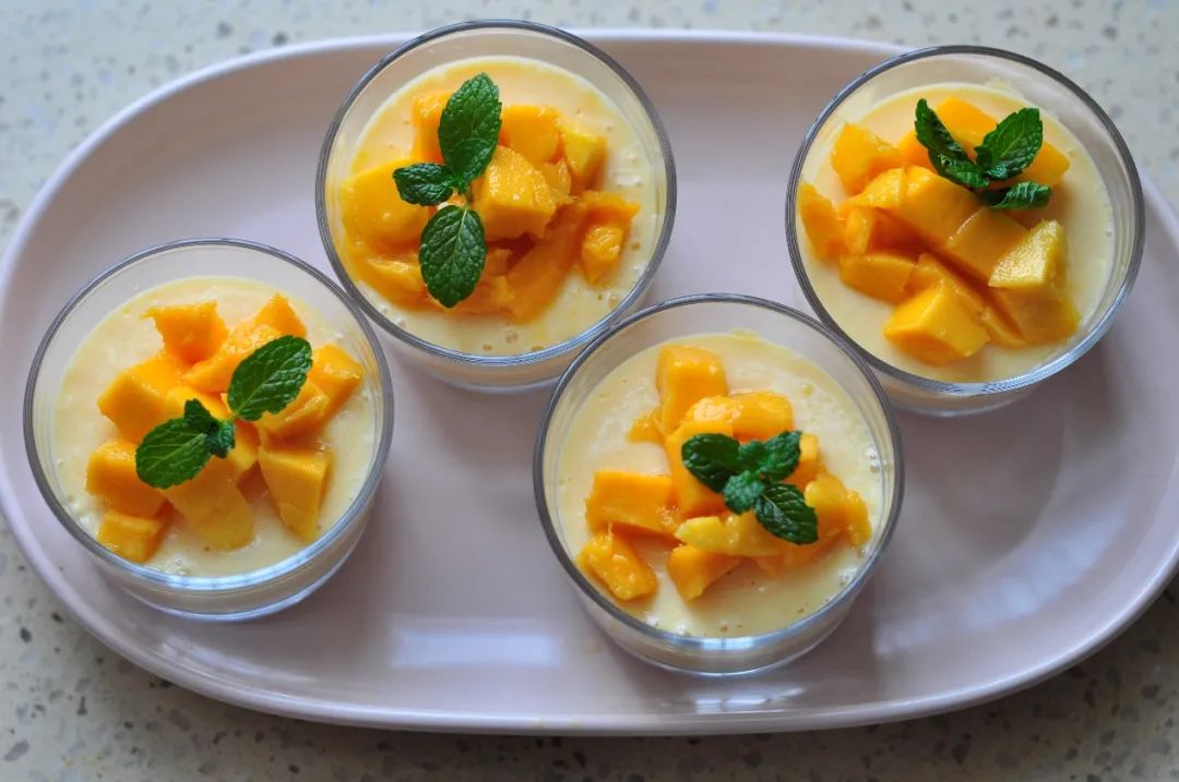 经典的水果甜点,巧妙地选取芒果与奶类巧妙结合,是补维A的最佳午后甜点。