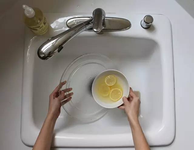 剩余的柠檬水用来冲洗微波炉盘。