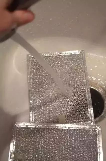 油烟机内的排烟罩可以卸下来清洁。在热水里倒入一大勺硼砂,将排烟罩浸湿刷洗,很快就干净了