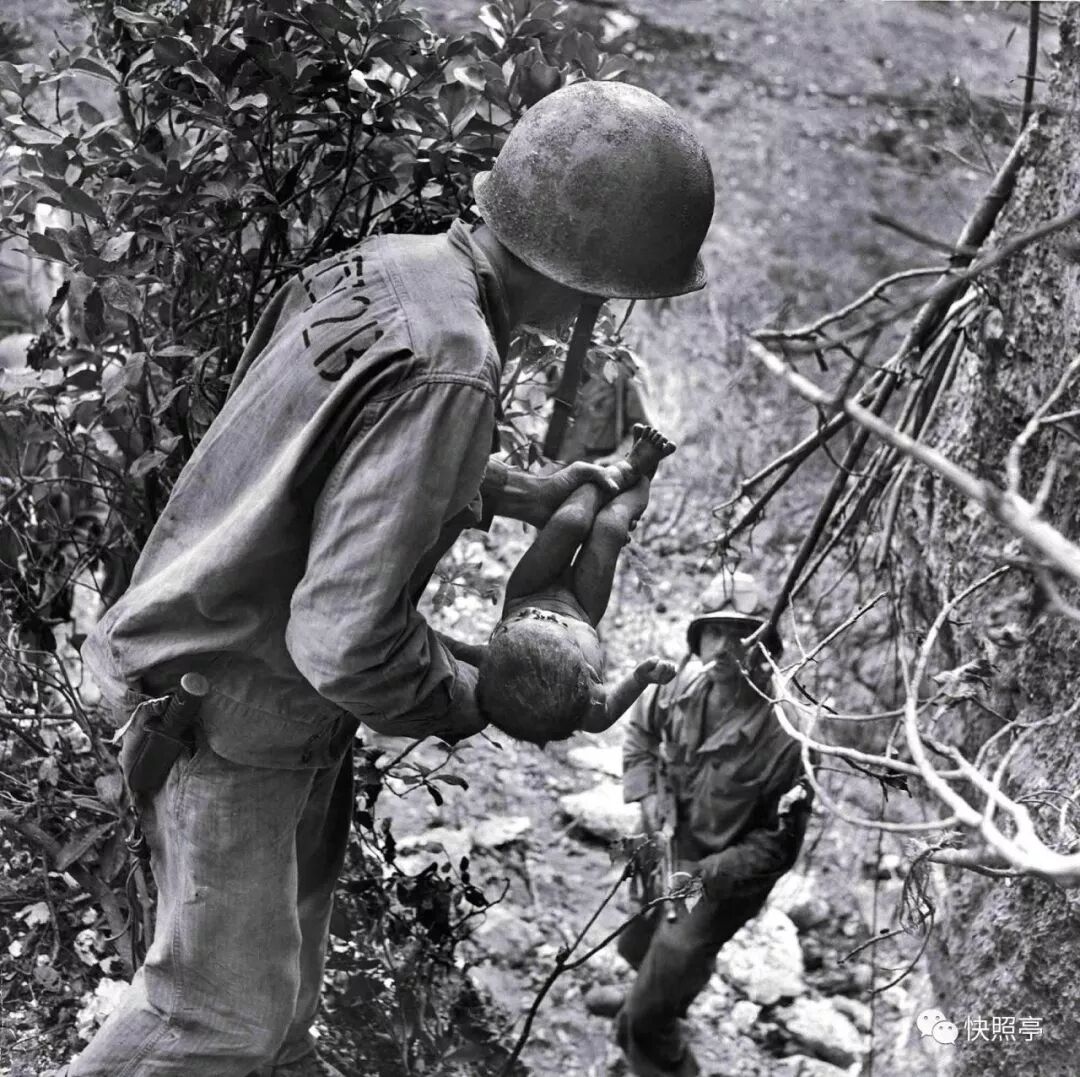 被美国士兵发现的浑身是伤的濒死婴孩,塞班岛,1944年6月;正在接受治疗的海军陆战队伤员(在这里,竖直人物因为给伤者喂水的水壶而更具符号化),塞班岛,1944年7月8日;临时医院,莱特岛,1944年11月;冲绳战役中被抬走的濒死之人;正在给一个小男孩处理额头伤口的乡村医生;助产妇默德·卡伦(Maude Callen)故事里的很多照片;西班牙村庄的守灵夜;史怀哲医院里的手术;母亲给植村智子(Tomoko Uemura)洗澡的那张令人难以忘怀的照片(史密斯晚年所拍,这张照片似乎是所有这些照片一种极致的总结)。