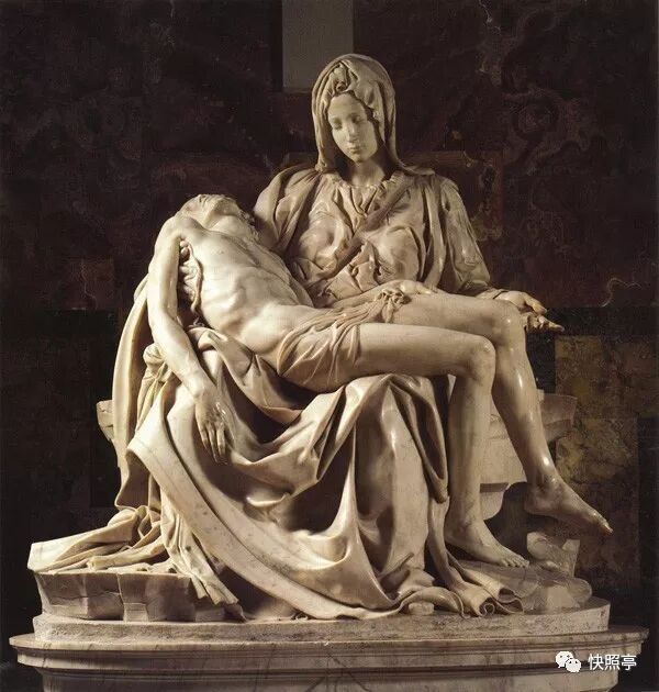 现在让我们回到我们的主题来到这幅圣母怜子图—死去的基督,这个男人靠在母亲的膝上,一幅充满柔情和丧亲之痛的图像。在这里,痛苦的承受者或死亡的受难者的形象很自然身体是水平的,而医治者或哀悼者的形象则是竖直的。两者构成了类似十字架的形状,这是我们能够注意到的简单却又足以令人吃惊的事实。