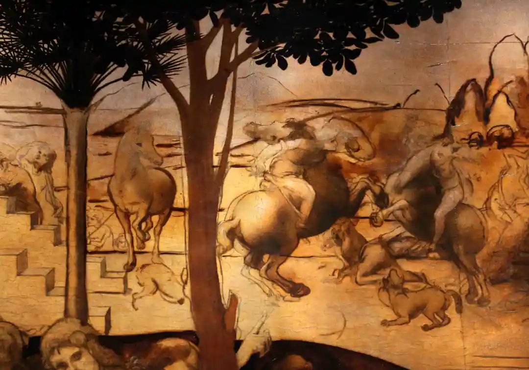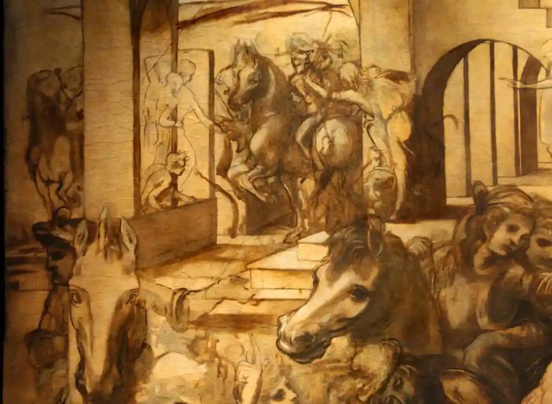 我们知道达·芬奇有邀请大家观看其素描草图并接受批评的习惯,而这实际上起着自我宣传的广告效应。笔者认为,由于绘制《三王朝拜》中的马匹及大量的不同动作的马匹素描习作,会在人群中形成一种口碑,相信达·芬奇对马匹有着深刻的研究。