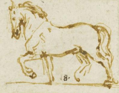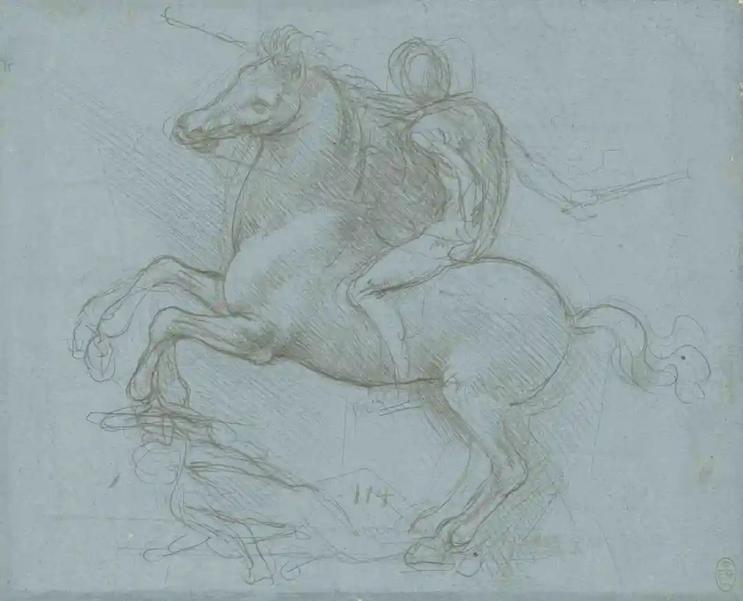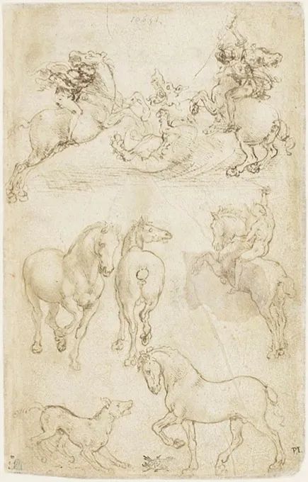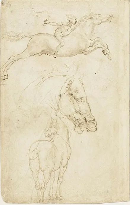 图1h. 达·芬奇,马匹与骑手,银尖笔素描,高12厘米,宽7.8厘米,私人收藏,丨图片来源:维基百科