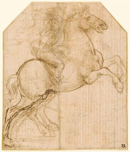 图2. 达·芬奇,弗朗切斯科一世·斯福尔扎青铜骑马像设计草图,素描,约1488-1489年作,高14.8厘米,宽18.5厘米,英国王室收藏丨图片来源:维基百科