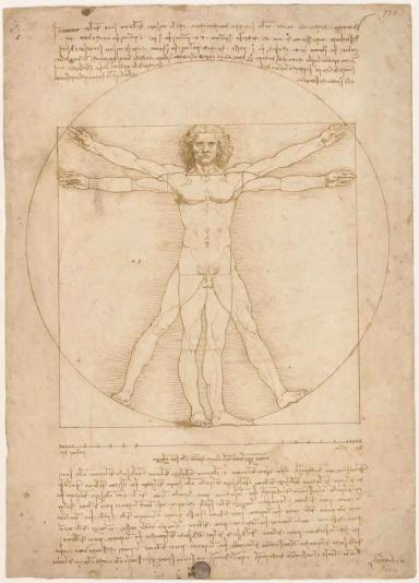图6. 达·芬奇,《维特鲁威人》,素描,约1487/8年,高34.4厘米,宽25.5厘米,现收藏于意大利威尼斯学院美术馆丨图片来源:维基百科