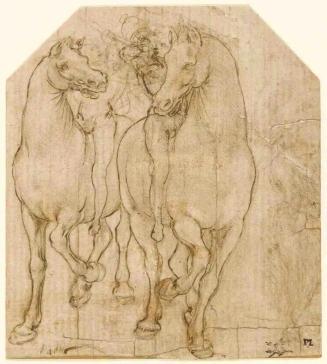 在绘制《三王朝拜》过程中,达·芬奇还绘制了大量有关马匹的素描,这些作品如今散布在世界各地博物馆中,我们在此放上数幅(图1d、图1f、图1g,图1h)供读者欣赏。在后面的章节里,我们会根据需要再展示一些画家在此阶段绘制的马匹素描。