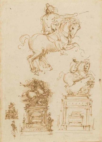 图15. 达·芬奇,强·贾克莫·特里武尔齐奥青铜骑马像设计,素描,约1508年-1510年绘制,高28厘米,宽19.8厘米,英国王室收藏丨图片来源:维基百科