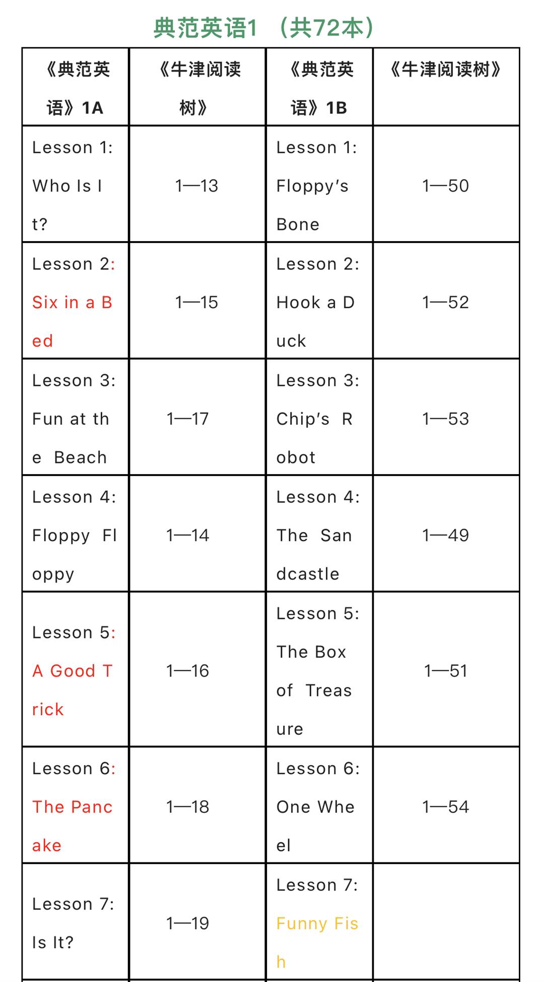 读完了《牛津阅读树》1、2阶后,考虑到性价比和屯书数量,我又入手了国内引进的《典范英语》。《典范英语》是《牛津阅读树》的浓缩版,是国内专业从《牛津阅读树》中精选了最适合我国中小学生阅读的309个最有趣的故事,内内容上完全相同,不同是《典范英语》配了中文注释。具体的对应关系,以《典范英语》1为例,部分如下图: