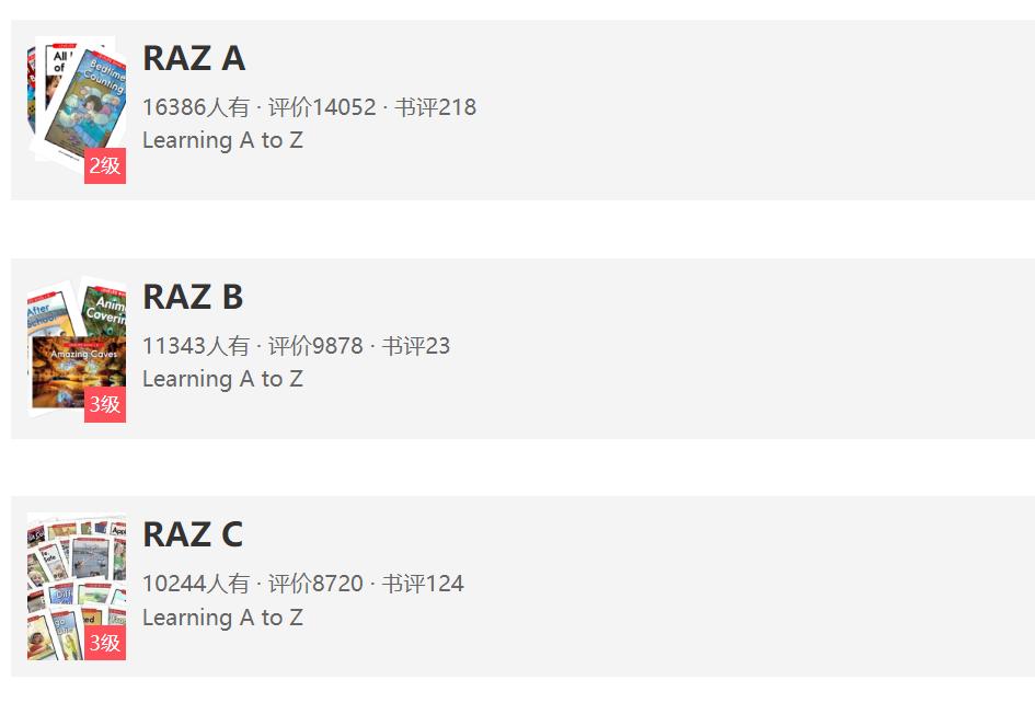 RAZ是美国的在线分级阅读丛书,从AA级、A级到Z2级共有29个级别,难度从易到难主机上升。学习全部内容相当于美国小学毕业,国内高中水平,内容涵盖广泛,包括基础自然、人文、历史、科学等多个领域。除了A级是入手的分册纸质版外,其他级别一直到G级娃都是在ABC Reading-RAZ 上进行阅读和打卡的。