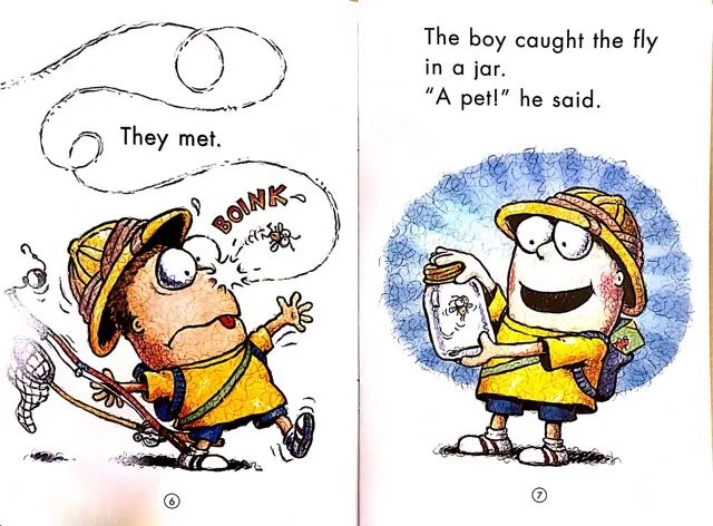 《苍蝇小子》,一个小男孩养了一只苍蝇当宠物,故事幽默夸张,共15本,是阳姐读的第一套桥梁书,有好几本甚至可以倒背如流。这个阶段除了上面提到的读物,还用多纳学英语、伴鱼、七彩熊、斑马英语等多个APP跟读了大量的电子版读物。