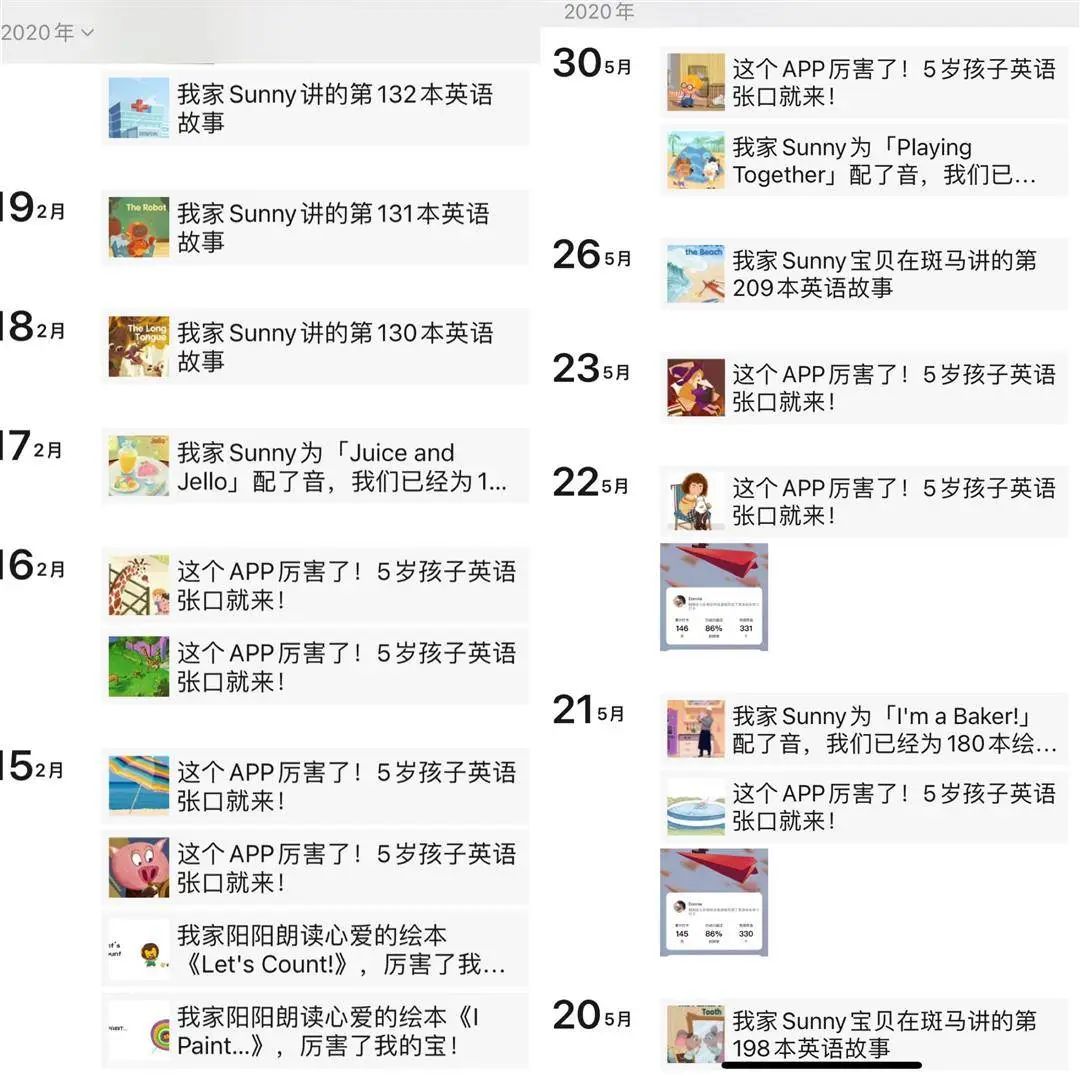 以上就是两年多来的英语启蒙小结,其实在这个资源过剩的年代,我们缺的不是书单,也不是资源,更不是神器,而是日复一日傻傻的坚持,共勉!