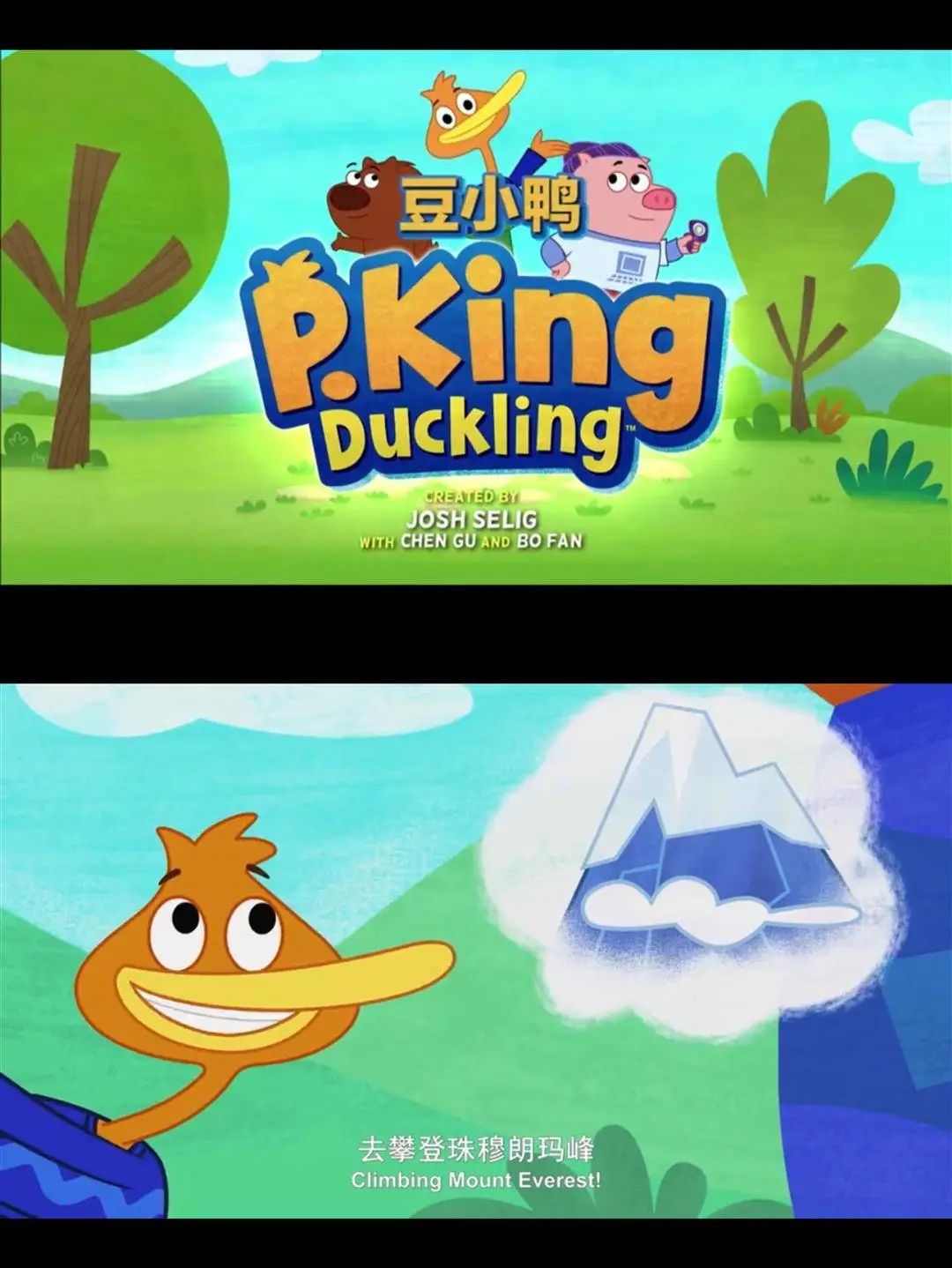 3S儿歌,歌词重复,句型简单,互动性强。从打招呼、数数、颜色、形状,到日期、交通、社交,覆盖了儿童生活会话和认知学习的方方面面,并且难度循序渐进,发音纯正,日常用来磨耳朵。14. 豆小鸭(P.King!Duckling)
