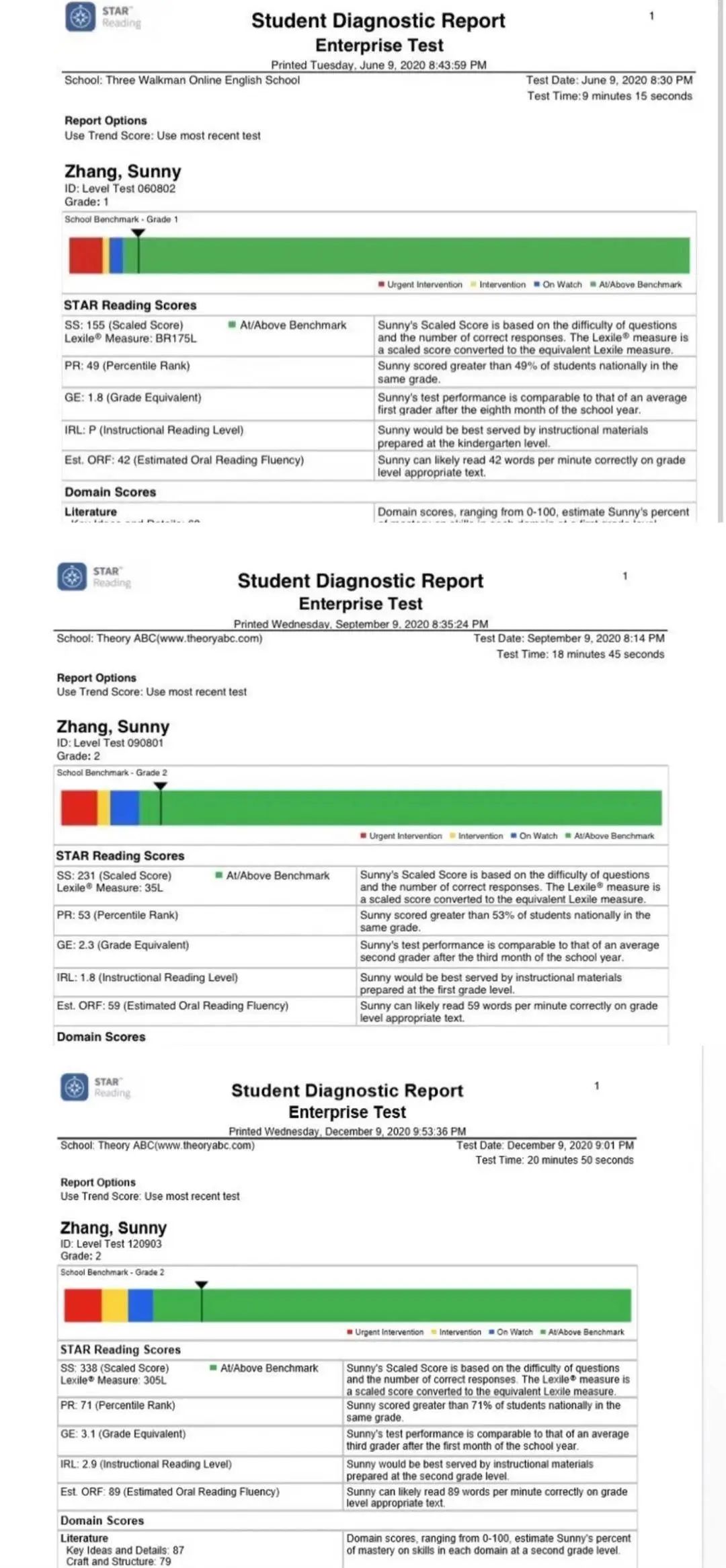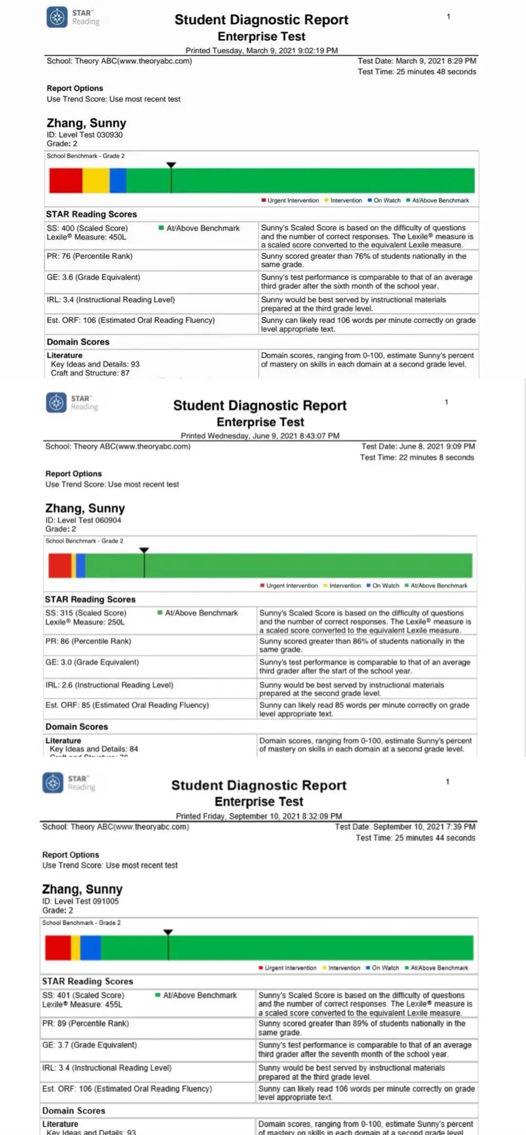 这是娃2021年Star测试情况