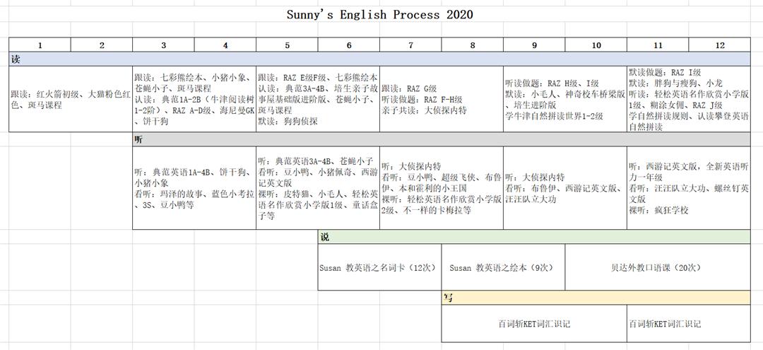 此阶段主要学习的是KET词汇,采用这种方式识记单词,不要求对单词掌握得多好,就是日积月累,混个脸熟。这是娃2020年阅读情况表