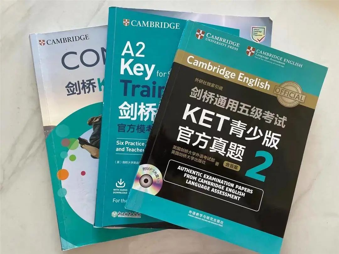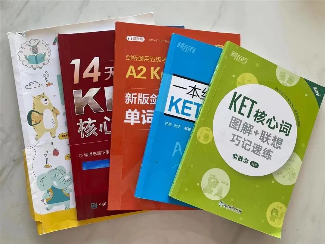 在2021年11月,三年级上学期将近9岁的时候,阳姐参考了剑桥等级考试第一级KET。此阶段的英语学习,除了少量零散的看动画片、读分级、练口语外,主要是老母亲自己带着进行KET考试的备考,学过的教材有: