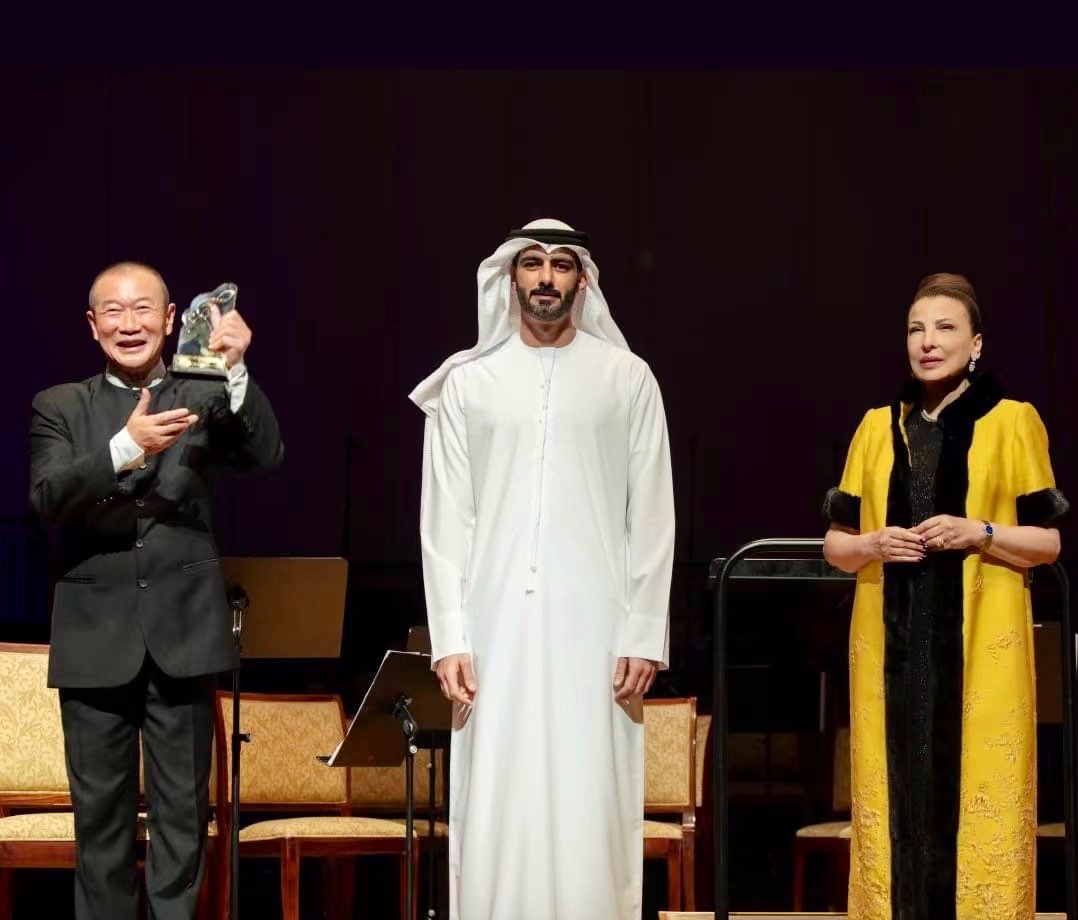 中国作曲家谭盾被授予阿布扎比艺术节终身成就奖,以表彰他长久以来在推动东西方文化交流作出的杰出贡献。奖项由阿联酋文化和青年部部长Salem bin Khalid Al Qassimi和阿布扎比音乐及艺术基金会创始人Huda Alkhamis-Kanoo共同颁发。