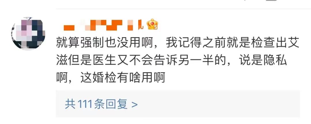 前段时间,热搜上有个话题讨论很热烈——“婚检是否应该强制”。有网友在评论区说:“婚检有什么用呢?医生要保护患者隐私,查出了问题也不会告诉对方的。”