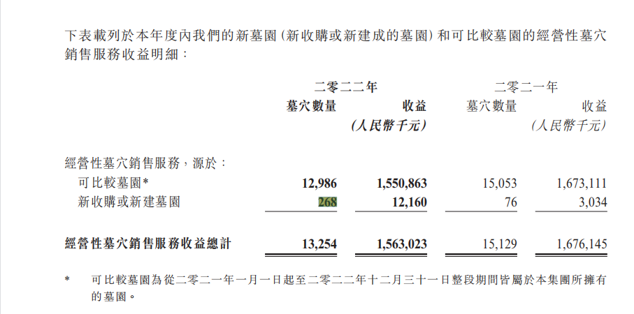 值得一提的是,2022年,福寿园新收购或新建墓园达268座。