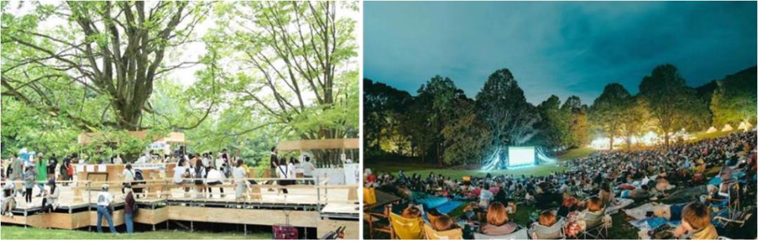 图 9 北谷公园中的家具装置图 10 公园里举办的大型露天电影活动