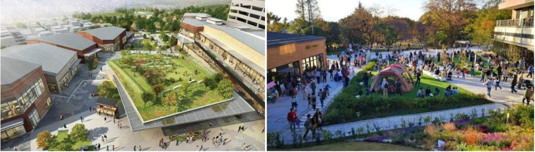 “公共广场+绿色空间+商业”模式是一种非常有活力的城市公共消费交往空间,比较典型的案例为日本南町天购物中心、Lalapor购物中心。