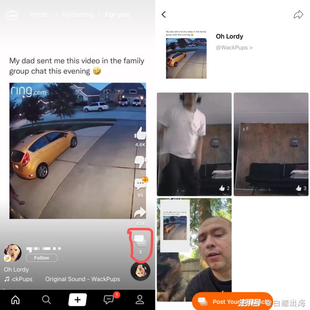Clapper 的创作者内容普遍更朴素,没有精心设计的话术、场景,更多是记录生活。创作者的年龄普遍比 TikTok 上大,也没有精致的妆容和穿搭,专业的创作者很少。也许是用户体量还不够大、或者 Clapper 的推荐算法不以创作者影响力为主要标准,评论点赞不多的内容也可以进入 for you 界面。
