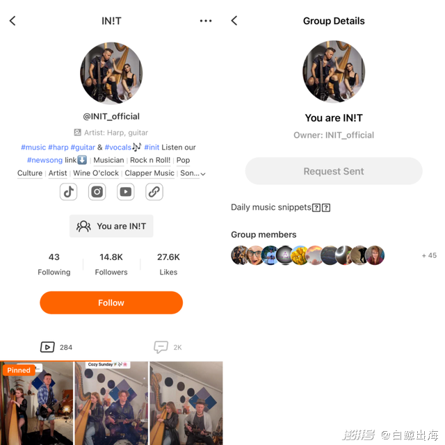 另外,用户也可以设置群组,不过 Clapper 的群组不像粉丝维护群,更像是兴趣社区,用户可以以短视频为入口吸引有相同兴趣的人入群,比如徒步爱好者群、编曲交流群、生活小妙招分享群等等。而这些社区主题也的确更契合我们对美国中青年群体的印象。