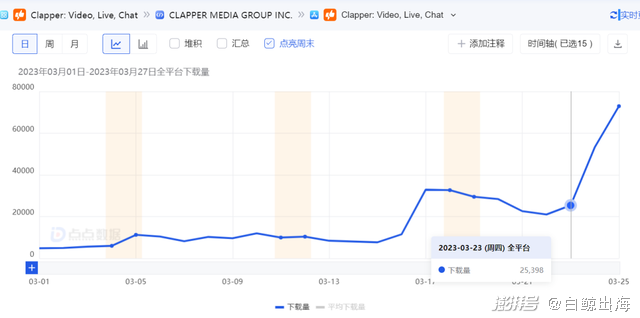 根据点点数据,Clapper 的下载量在 3 月 23 日有一个大幅度上升,这和周受资代表 TikTok 前往国会是同一天,这很难不让人猜想 Clapper 下载量上升与这件事有关。