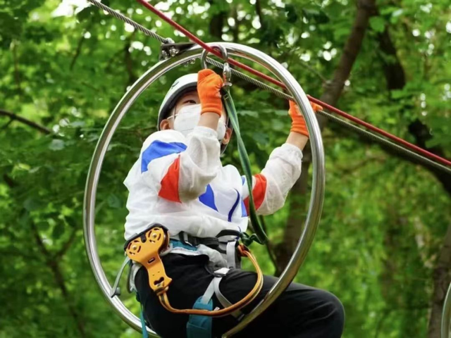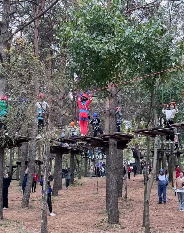 净月潭森林探险乐园项目线路总长1550米,设有黄绿蓝3条趣味体验线、红橙黑3条耐力挑战线、103个游戏关卡,轻松满足不同挑战者闯关需求!